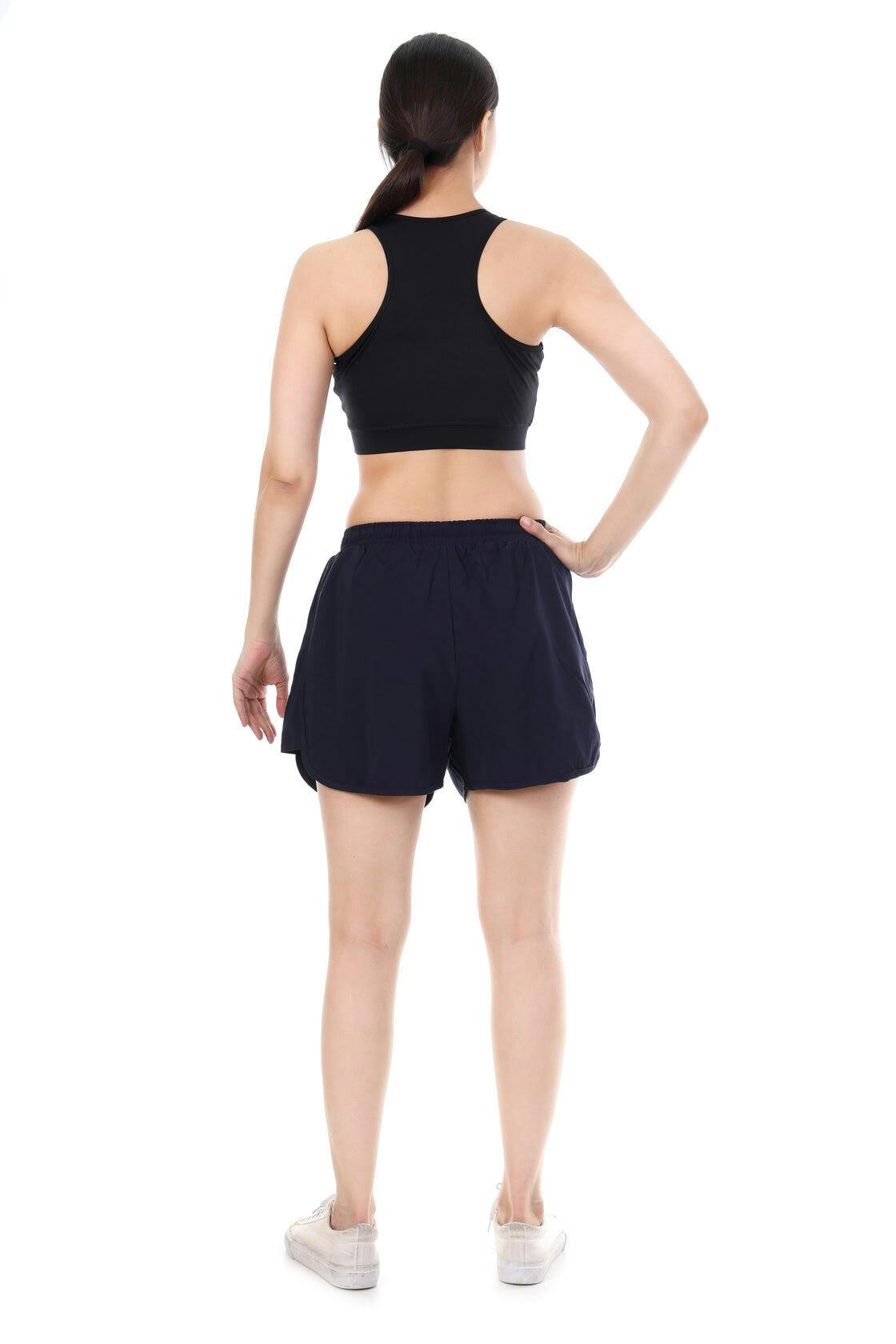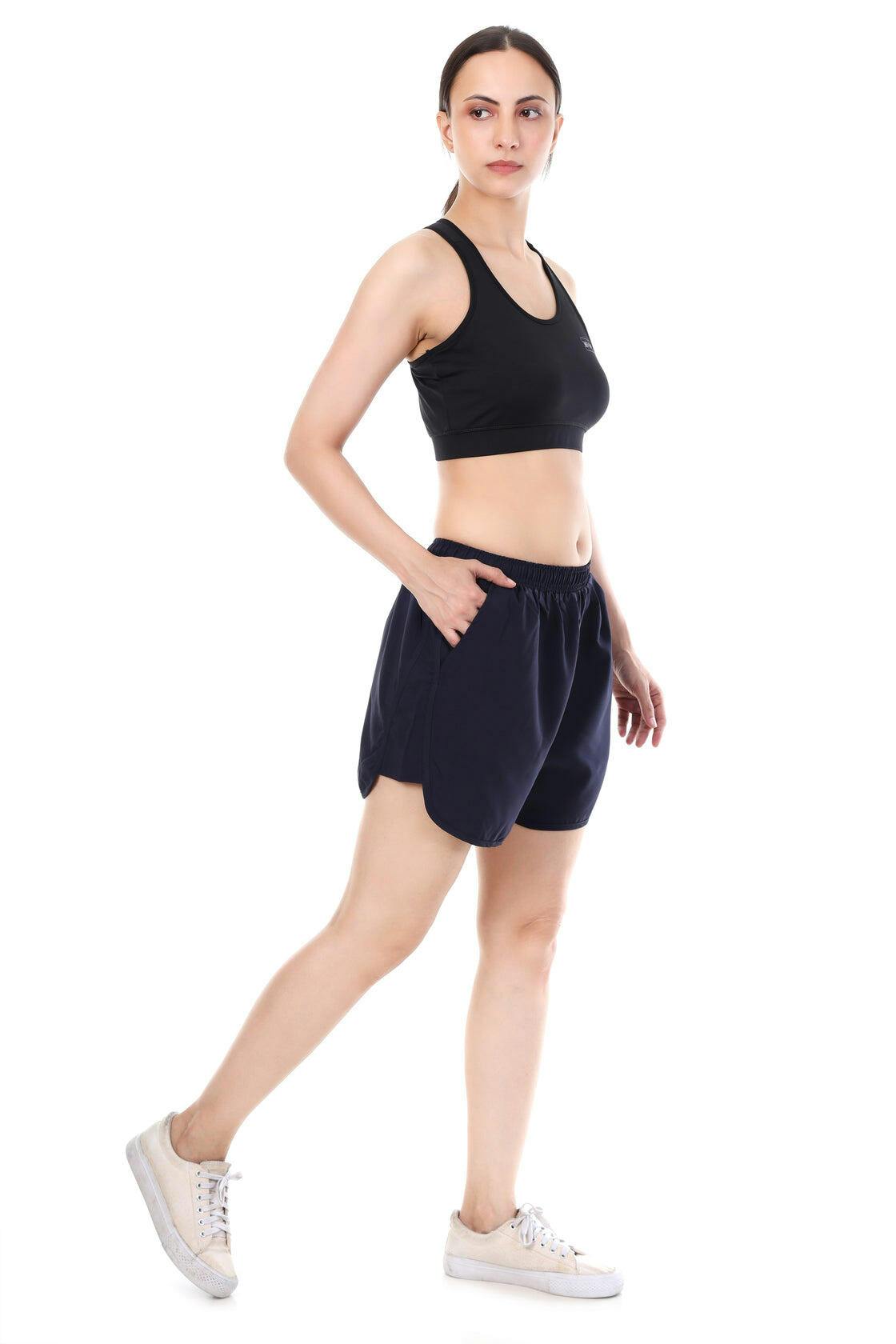 Push limits in style with the MidnightEdge Active Set, a sleek combination of a black sports bra and navy performance shorts. Designed for women who love confidence and comfort, this set blends supportive design with lightweight breathability, making it the perfect outfit for workouts, runs, or casual athleisure.